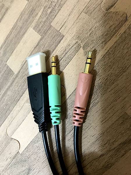 末端的三條線分別為:耳機(綠)&麥克風(紅)&USB(黑)